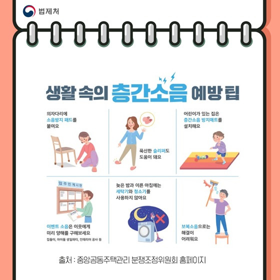 - 소음 관리 : 층간소음 문제를 예방하기 위해 가구에 부드러운 패드를 사용하고, 늦은 시간에는 조용히 활동하는 것이 좋습니다.