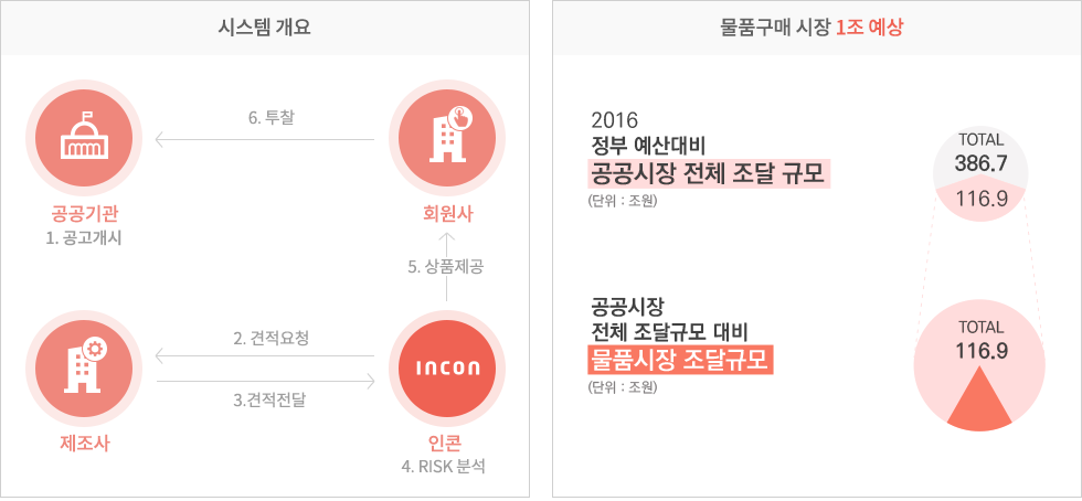 공공기관에서 발주하는 입찰 계약에 대해 투찰업체 와 제조사의 대금정산 / 투찰정보 등을 투명하게 제공해주는 플랫폼으로 투찰업체 의 계좌에 공공기관의 납품 대금 입금 시 사전에 투찰업체 와 제조사가 계약 / 동의한 계좌와 금액으로 이체업무를 수행할 수 있는 시스템으로써 웹사이트를 포함한 전산시스템 일체를 말한다.