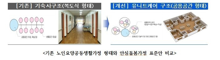 노인 돌봄을 위한 공동생활의 장단점도 무시할 수 없습니다. 전통적인 구조와 현대적인 유닛 케어 모델을 비교한 이미지를 통해, 노인들이 겪는 생활환경의 변화를 살펴볼 수 있습니다.