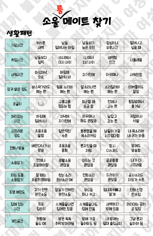 - 찰떡궁합 룸메 유형 테스트