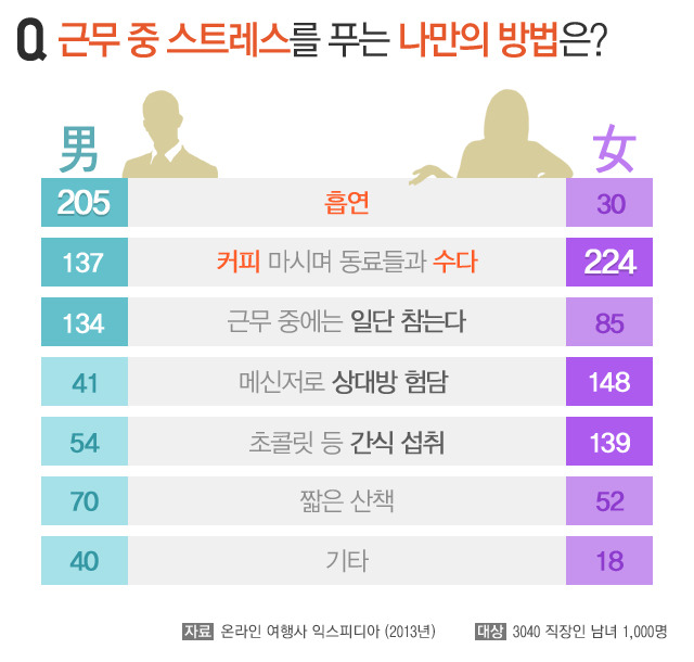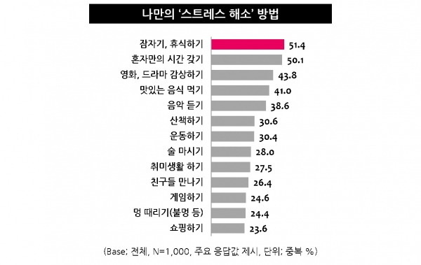 다양한 스트레스 해소 방법들이 있습니다. 아래는 사람들이 선호하는 방법들입니다.