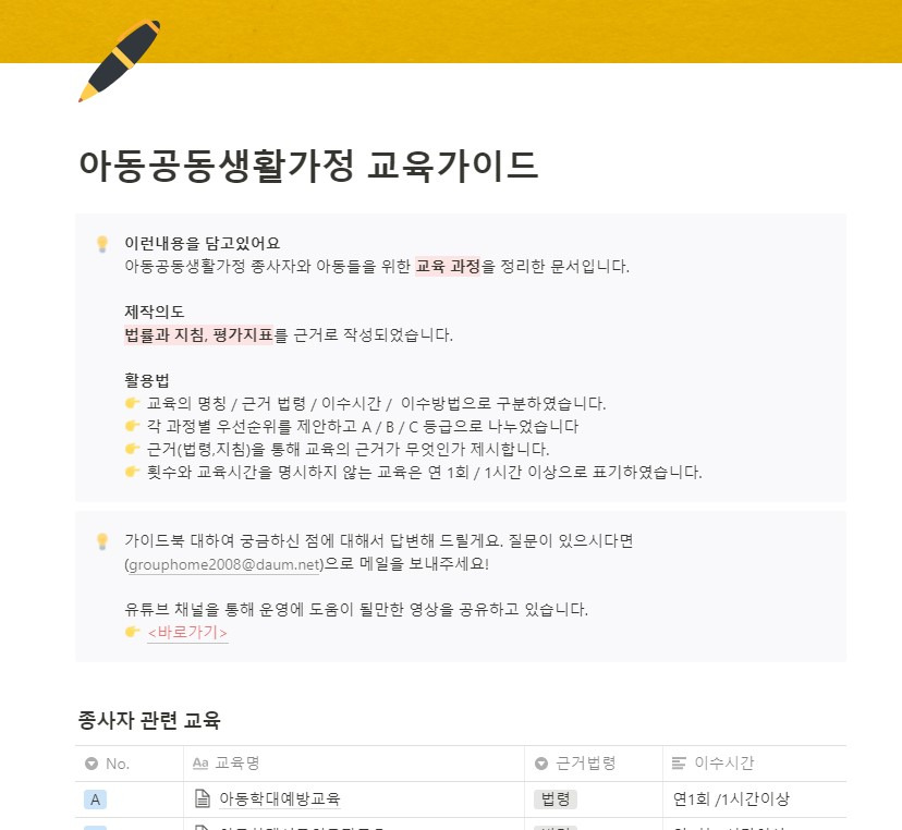 - 아동공동생활가정 종사자와 아동을 위한 교육가이드북