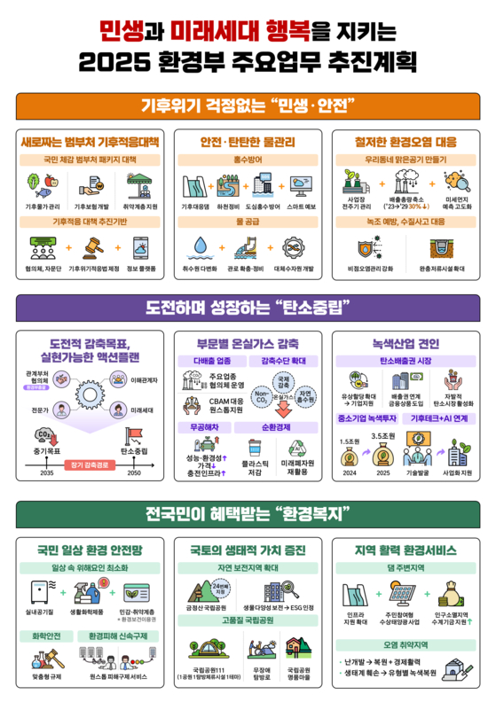 위의 인포그래픽은 2025년 환경부의 주요 이니셔티브를 보여줍니다. 이러한 정책들은 자연재해에 대한 대응력을 높이는 데 기여할 것입니다.