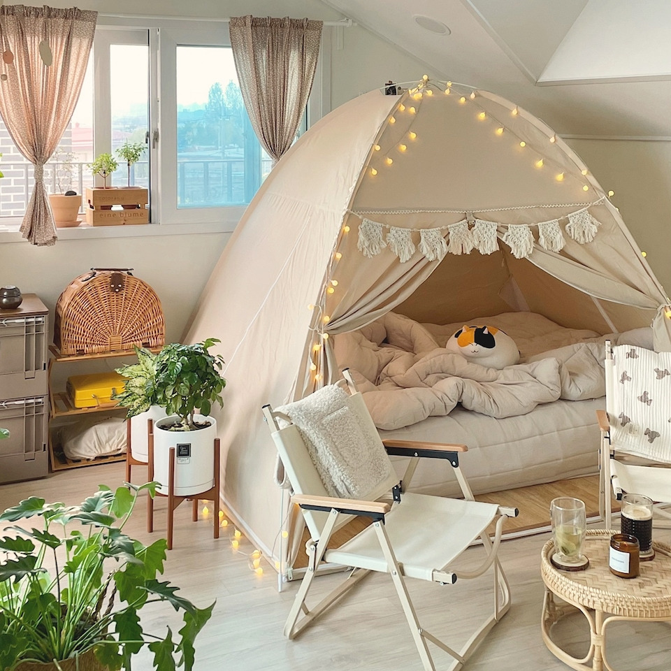 조명도 중요한데, 따뜻한 무드의 조명을 활용하면 아늑한 분위기를 더할 수 있습니다.