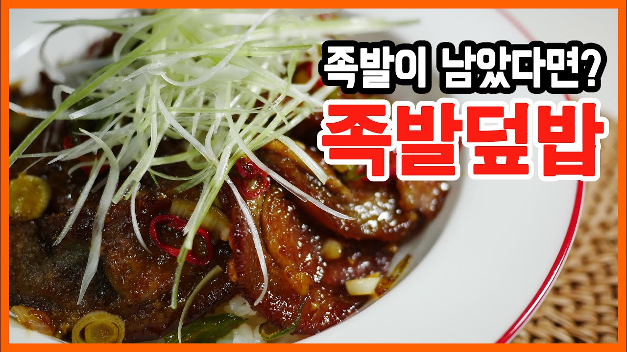 - 족발 덮밥 밥 위에 족발을 얹어 만드는 간편한 한 끼입니다. 족발을 슬라이스 하여 밥 위에 올리고, 간장과 참기름으로 간을 맞추면 맛있는 족발 덮밥이 됩니다.