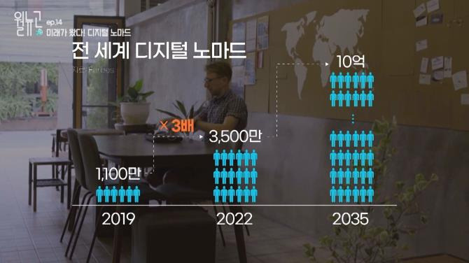 디지털 노마드는 인터넷과 모바일 기술을 활용하여 장소에 구애받지 않고 일하는 사람들을 의미합니다. 이들은 카페, 코워킹 스페이스, 심지어 해변에서도 일을 할 수 있습니다. 최근 통계에 따르면, 2019년에는 1,100만 명의 디지털 노마드가 있었으나, 2022년에는 3,500만 명으로 증가하였고, 2035년에는 1억 명에 이를 것으로 예상됩니다.