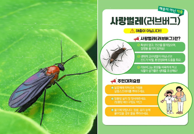 [4] 컴비 - 러브버그, 익충?! 퇴치법부터 오해와 진실 - 컴비 - 티스토리 (https://cominbe.tistory.com/entry/%EB%9F%AC%EB%B8%8C%EB%B2%84%EA%B7%B8%EC%9D%B5%EC%B6%A9-%ED%87%B4%EC%B9%98%EB%B2%95%EB%B6%80%ED%84%B0-%EC%98%A4%ED%95%B4%EC%99%80-%EC%A7%84%EC%8B%A4)