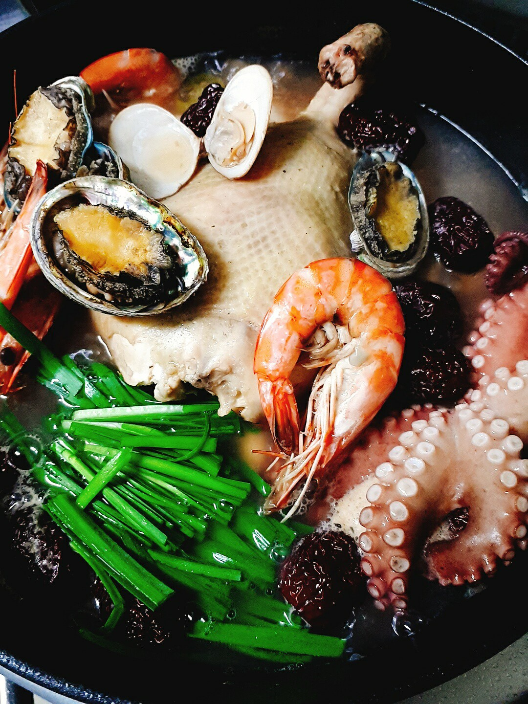 - 재료 : 새우, 오징어, 조개, 미역, 대파, 고추장, 간장
