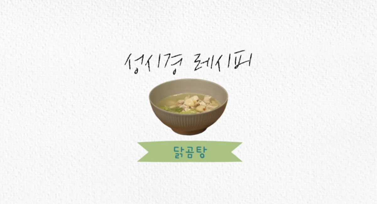 - 재료 : 닭, 대파, 마늘, 생강, 소금, 후추