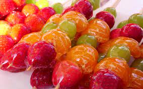 그런 다음, 꼬치나 나무막대에 과일을 꽂아 준비합니다.