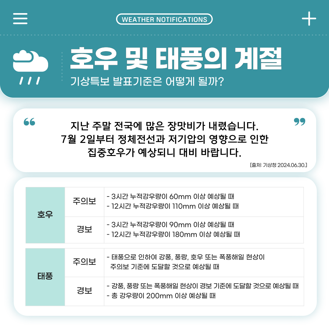 극한호우는 예고 없이 찾아올 수 있습니다. 따라서 사전 준비와 점검이 무엇보다 중요합니다. 가족과 함께 안전한 여름을 보내시길 바랍니다! ☔️