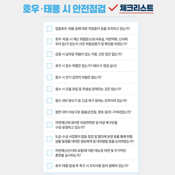 - 정책브리핑 호우·태풍 시 안전점검 체크리스트