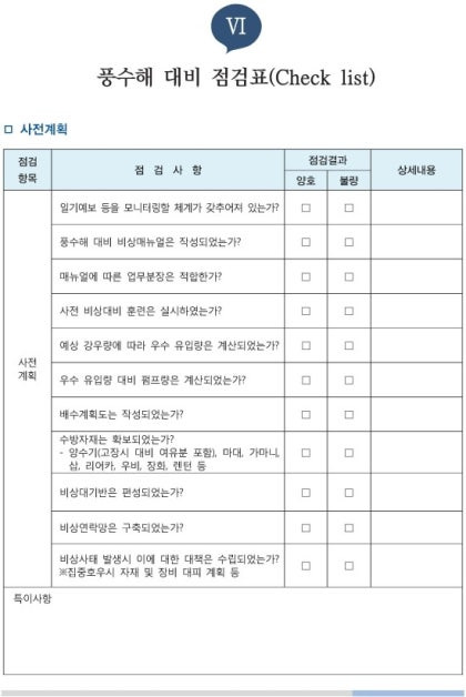 - 고용노동부 풍수해 대비 점검표
