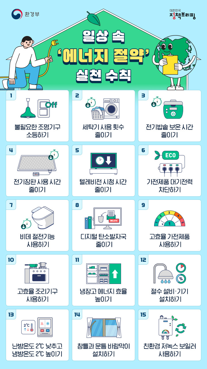 [2] NAVER - 지구를 아끼는 방법~ 에너지 절약 방법!/가정에서 실천하는... (https://blog.naver.com/onsolcomm/220969137152?viewType=pc)