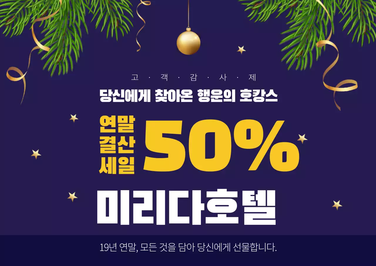 이 호텔은 연말 특별 할인 이벤트를 진행하고 있습니다. 50% 할인된 가격으로 크리스마스 호캉스를 즐길 수 있는 기회를 놓치지 마세요!