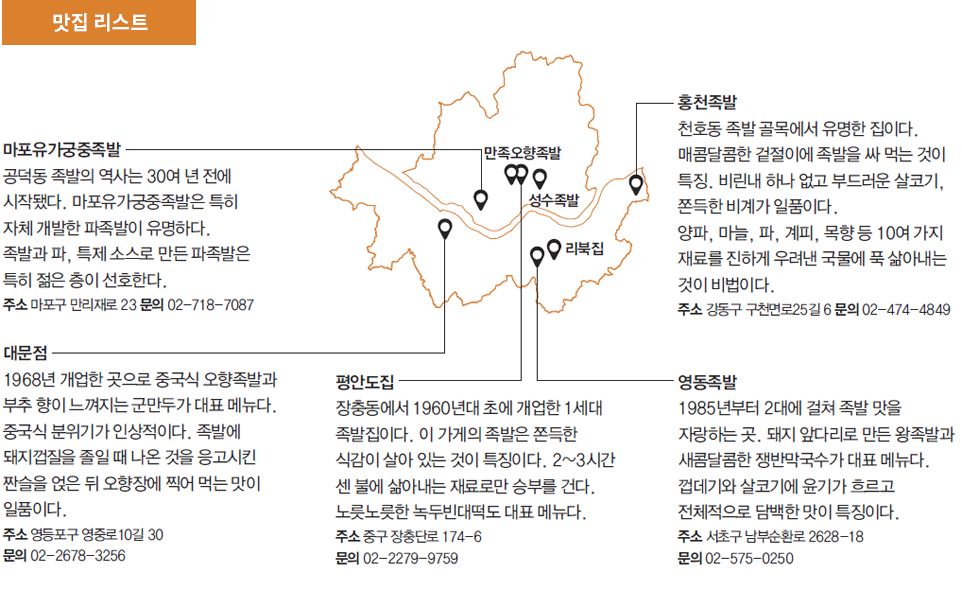 서울에는 족발을 전문으로 하는 맛집이 많이 있습니다. 예를 들어, "마포유가족발"은 특별한 소스로 유명하며, "홍천족발"은 깊은 맛으로 많은 사랑을 받고 있습니다. 이러한 맛집들은 족발 애호가들에게 꼭 가봐야 할 장소입니다.