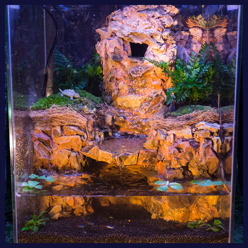 - 식물 배치 : 수생식물과 육생식물을 조화롭게 배치합니다. 수조의 한쪽에는 수생식물을, 다른 쪽에는 육생식물을 배치하여 자연스러운 경계를 만들어줍니다.