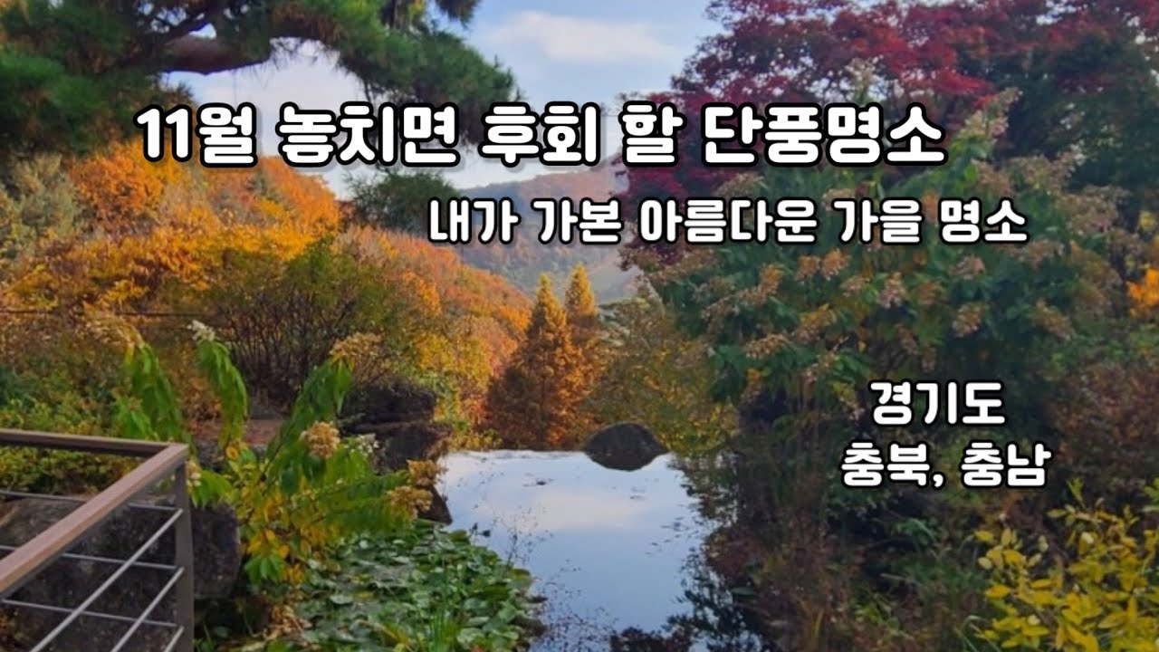 [3] YouTube · Hiking in Korea - 2024 추천 단풍 명소 Best 11 | 단풍 언제 어디가 좋은지 알려... (https://www.youtube.com/watch?v=qcqHcqYm2yg)