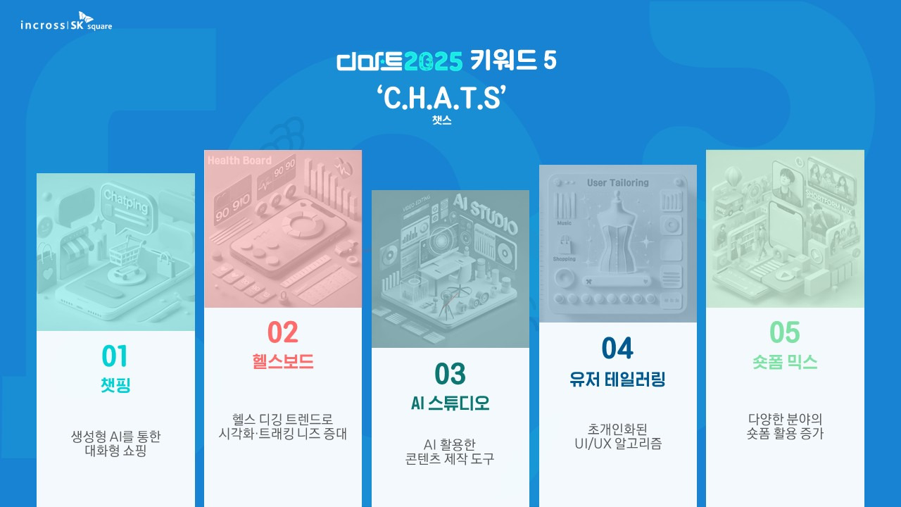 - A I (인공지능): AI 기술이 콘텐츠 제작과 소비에 큰 영향을 미치고 있습니다. 개인화된 추천 시스템과 자동화된 콘텐츠 생성이 보편화되고 있습니다.