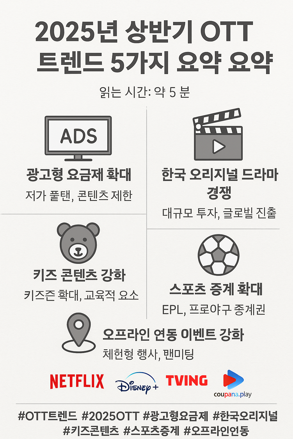 OTT 콘텐츠는 단순한 스트리밍 서비스를 넘어, 개인화된 콘텐츠 제공과 AI 기술의 접목으로 진화하고 있습니다. 2025년에는 광고 기반의 구독 모델이 확산되고, 한국의 오리지널 드라마 경쟁이 더욱 치열해질 것입니다. 또한, 아동 콘텐츠와 스포츠 방송 권리의 성장도 주목할 만한 변화입니다. 이러한 변화는 소비자들에게 더 많은 선택권을 제공하고, 콘텐츠 제작자들에게는 새로운 기회를 창출할 것입니다.