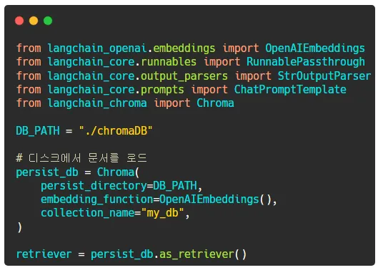 - 인덱싱 : 로드된 문서를 벡터 데이터베이스에 인덱싱하여 빠른 검색이 가능하게 합니다.