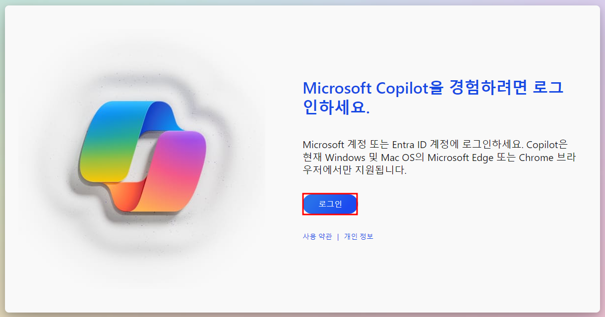 - 로그인 : Microsoft 또는 Entra ID 계정으로 로그인합니다.